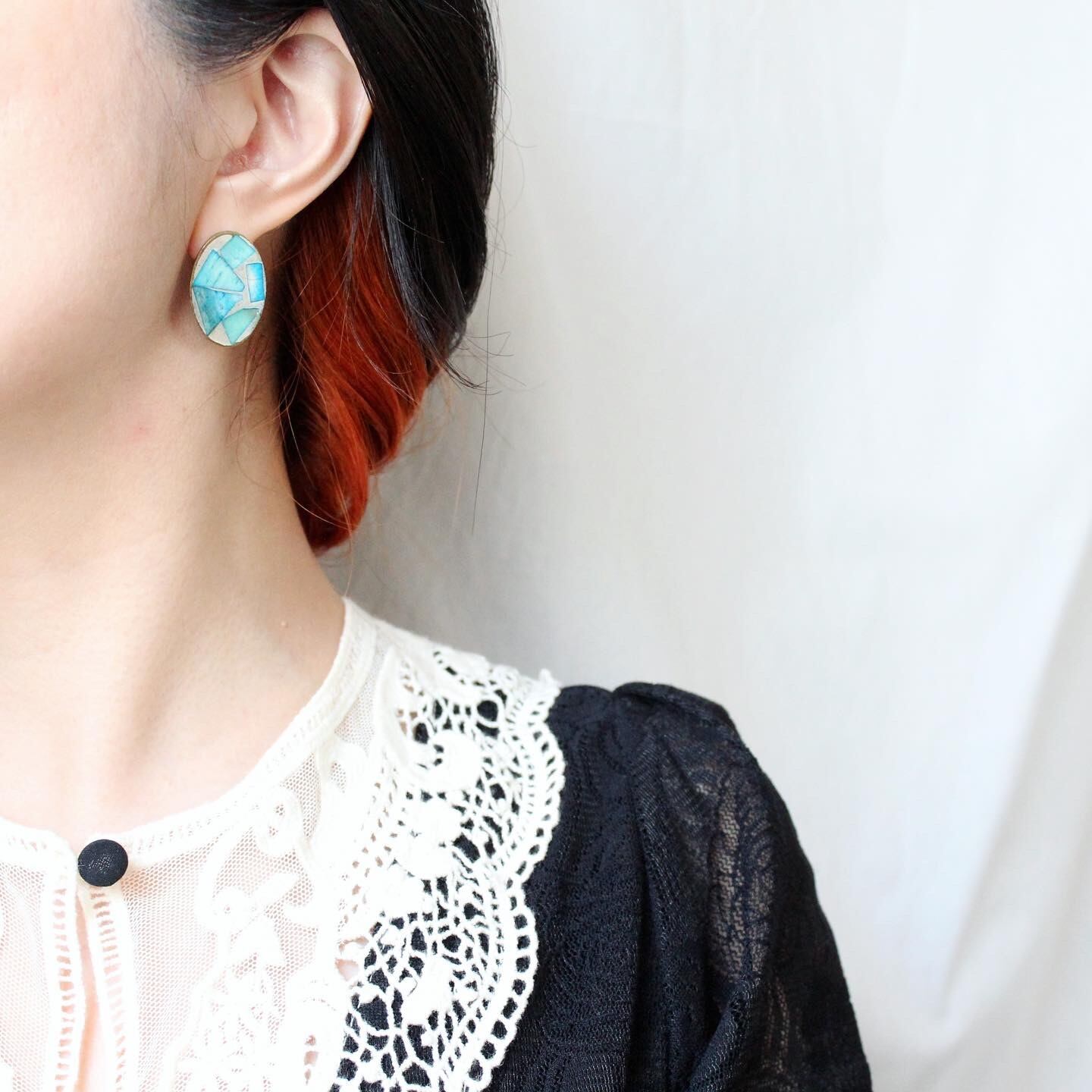 インド製のモザイクボタンを使用したピアスです。