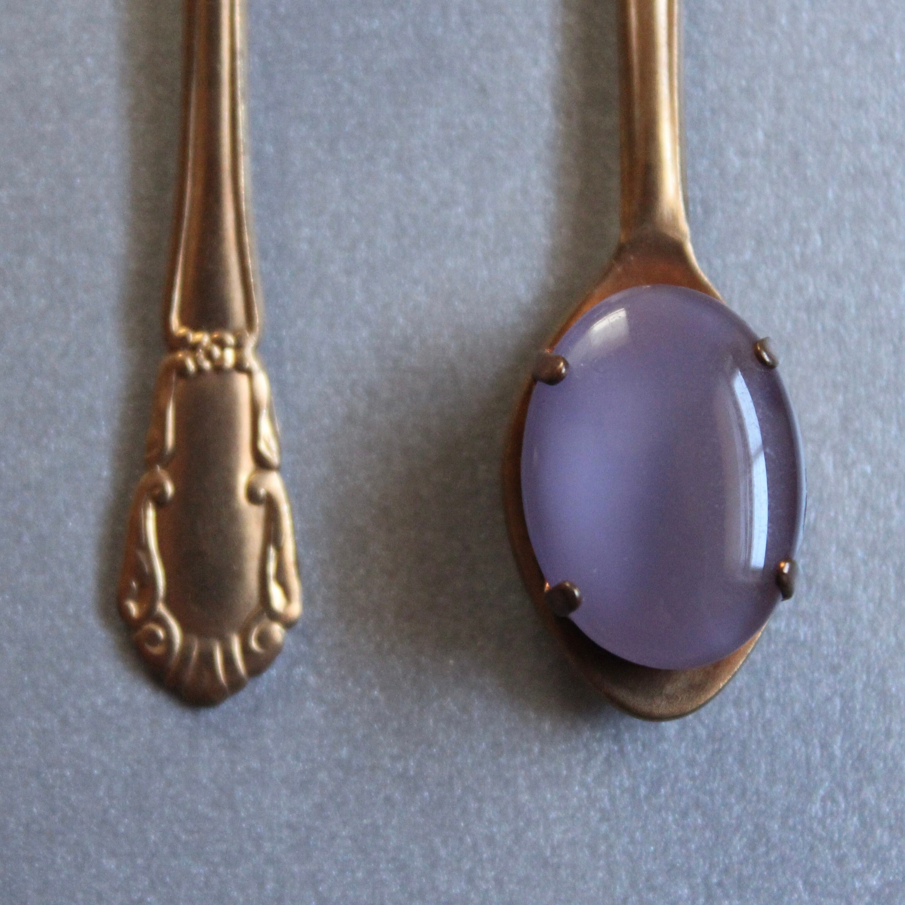 スプーンの形をした真鍮パーツに、ドイツヴィンテージパーツを合わせたピアスです。